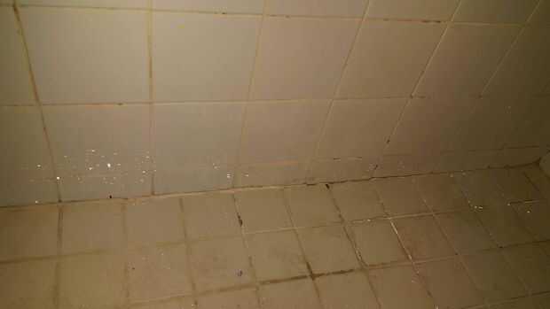La boquilla necesita una superficie húmeda para trabajar. Superficies secas son aceptables si la impermeabilización no es necesaria. Estas grietas son profundas por lo que yo quería asegurarse de que la lechada puede ser empujada en ellos.