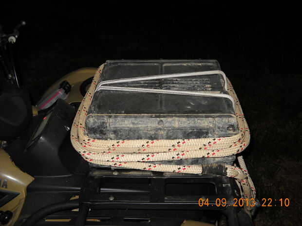 Después de mirar alrededor me encontró un ejército sobra 25mm Granada caso mide 14" de alto * 13" de ancho * 6 profunda, su construido por espesor del plástico del ABS, tiene una tapa con empaques a prueba de agua, y un pesado Trace por cierre. Era un ajuste perfecto para la parrilla delantera de mi Yamaha Grizzly. A continuación regresó y anotó todas las herramientas que había llevado, utilizado o había visto utilizadas en los senderos en los últimos 20 años. Este kit es lo que se me ocurrió...