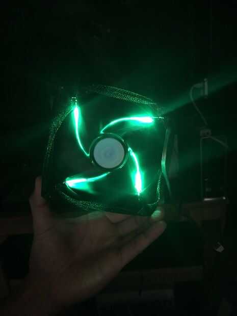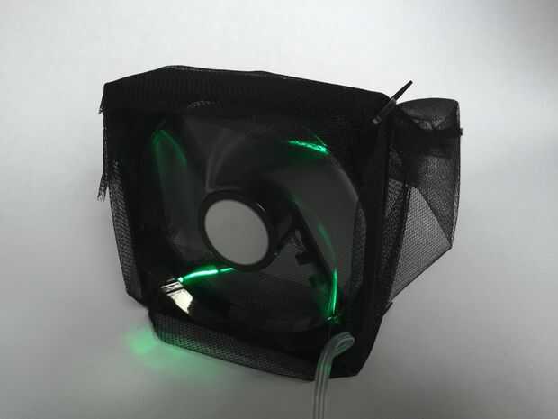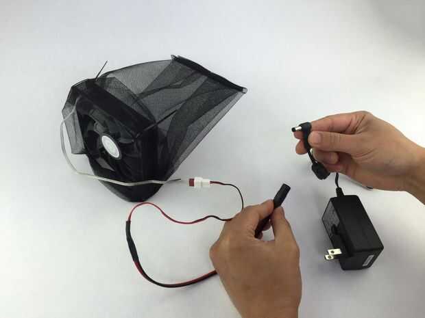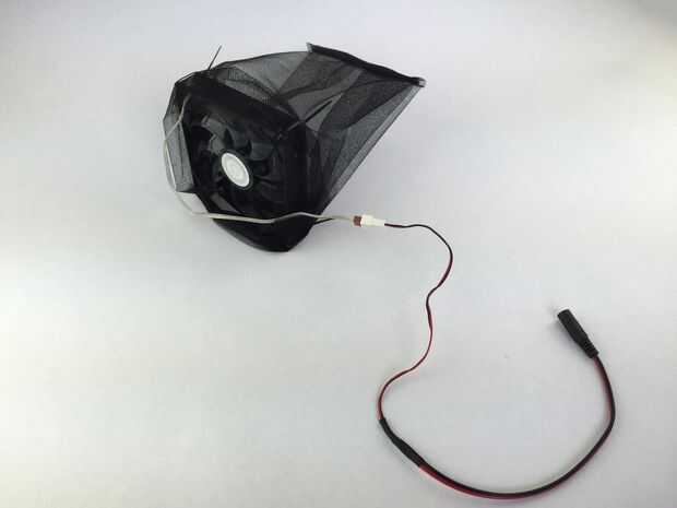 Con la red completa, conectar el ventilador con el cable adaptador y conecte el cable de adaptador de alimentación a la fuente de alimentación. Conecte la fuente de alimentación en la pared para asegurarse de que el ventilador gira hacia arriba y los LEDs encienden.