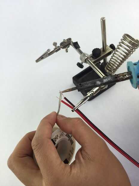 A continuación, cebar los extremos desnudos de los cables con alguna soldadura. Esto se conoce como estañar los cables.