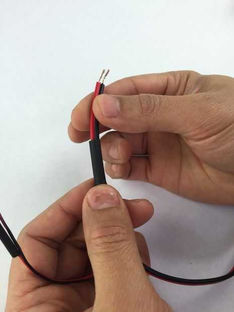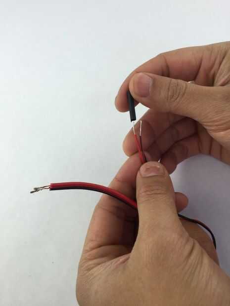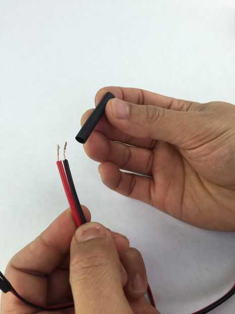 Antes de unirse a los alambres juntos, ajuste y posición de tubería del encogimiento del calor. Esta tubería del encogimiento del calor protege los empalmes de cable y ayudar a evitar que un cortocircuito.