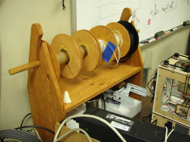 Así que esto es el producto final, carretes y todo. Debo señalar que ni los carretes ni la cremallera están diseñados para cargas pesadas. El plástico ABS que utiliza el Makerbot es ligero y elástico y la velocidad de avance es más lenta. Considero diferentes técnicas para todo esto si vas a usar algo como esto para alambre pesado.
