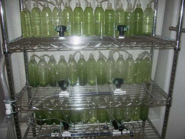 Foto-biorreactor de algas y acuicultura uso reciclado botellas