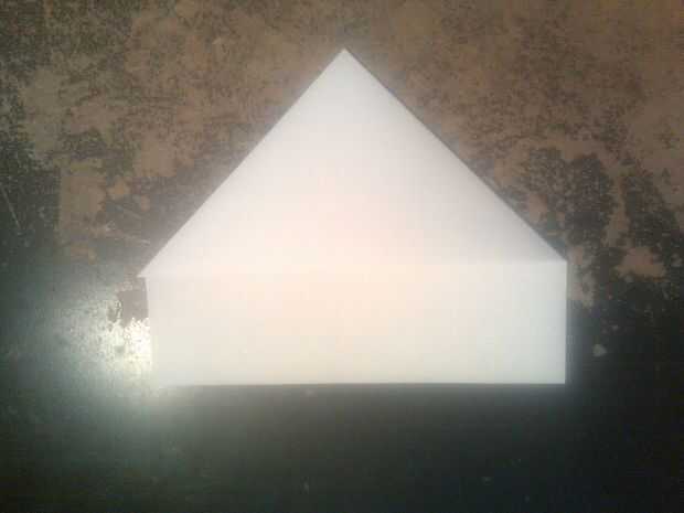 Ahora, dobla la "casa" en la mitad de izquierda a derecha. (Foto 5) (Esto es cómo se llevará a cabo su "boleto" al contar la historia)