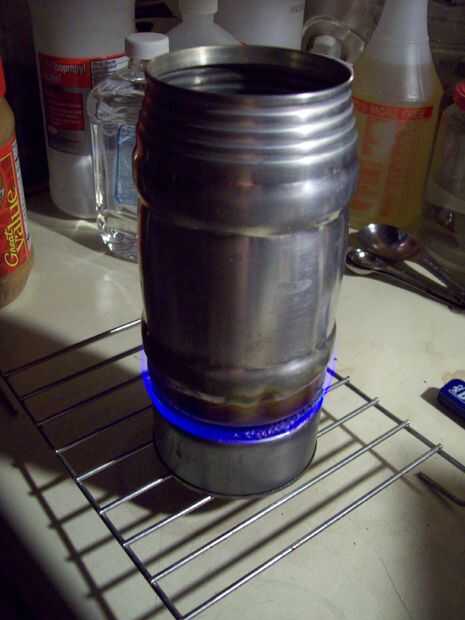 usted puede hacer una bolsa de personal de emergencia y súper ultraligero backpacker de estufa, basado en la tecnología de baja tecnología CFV (vaporizador de fuerza capilar), con los siguientes materiales:1. un vacío soda puede para la olla algún ot