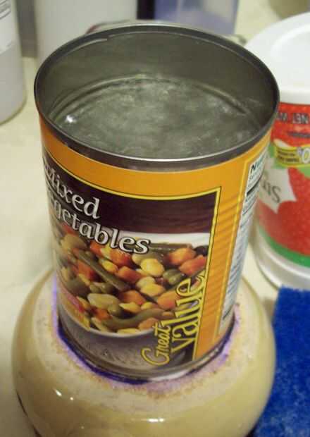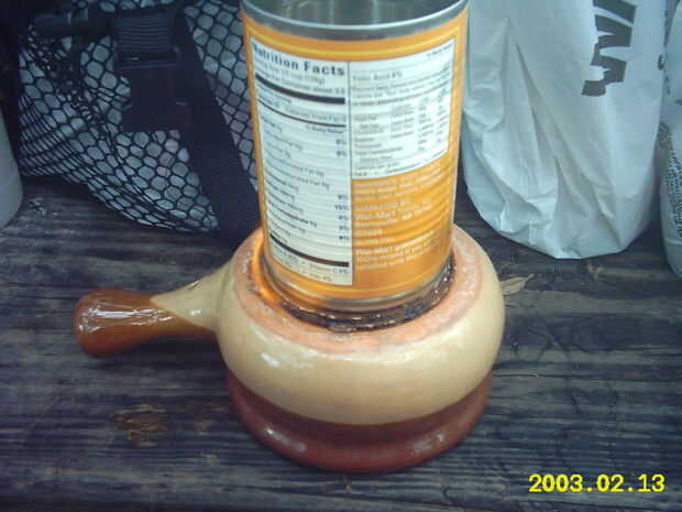 3. un nivel, superficie plana e incombustible (o una lata vacía segundo de aproximadamente el mismo diámetro como el pote puede o un poco más grande, preferiblemente con un fondo que ajuste o aceptar que la soda puede inferior bien - ver fotos).