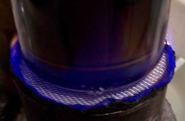 Un anillo de llama azul debe rodear el bote y luego el bote debe comenzar la calefacción para arriba.