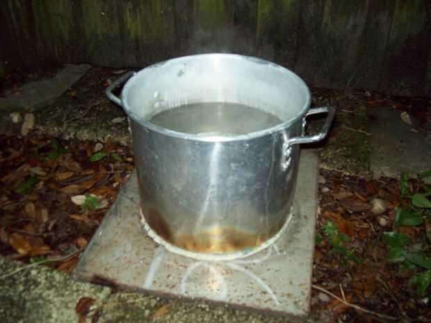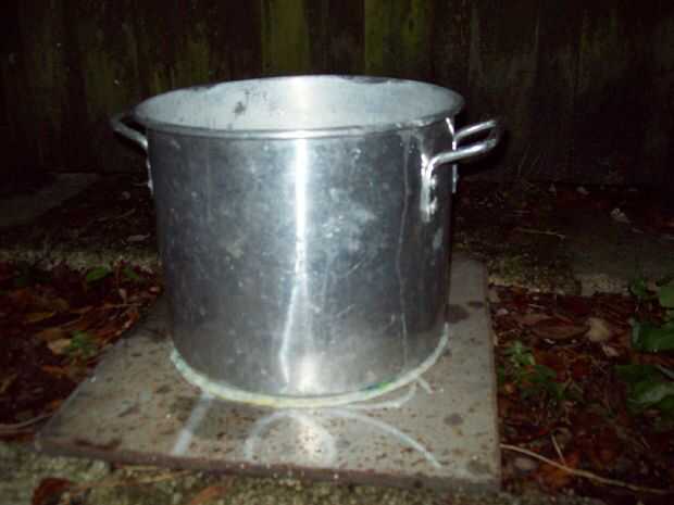 10 capas de papel toalla no basta - necesitan más como treinta. Por lo menos una y media taza de combustible. Para una olla tan grande lo que el diámetro de la hornilla de estufa un par de pulgadas más pequeño podría ayudar.