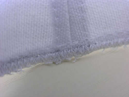 Se unen los bordes. Con una máquina de coser o a mano, zig-zag o blanket-stitch sobre los bordes de corte para evitar que la tela se deshilache. Reforzar las costuras verticales en rodajas-a través de la costura y hacia atrás un poco.