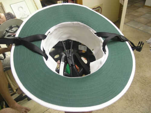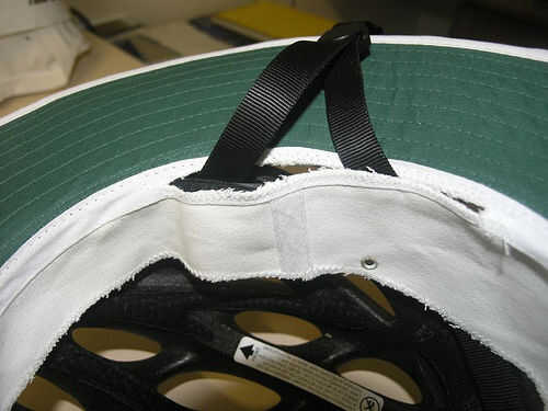 Cortar la corona - para minimizar el malestar y maximizar la ventilación. Que corte menos la parte de atrás para cubrir la brecha grande. El frente es de aproximadamente 30mm de alto, y la parte posterior es de aproximadamente 80mm...
