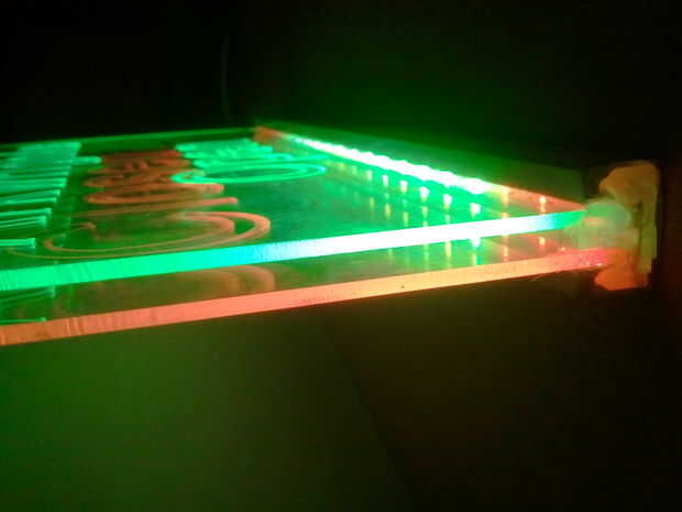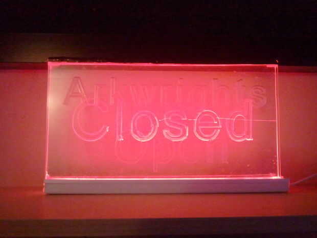 esto fue hecha de dos trozos de plexiglás que usé mi CNC para grabar abierto y cerrado en entonces utilizó una cadena de LED para luz de borde. Una longitud corta de 25 x 15 trunking y pegamento caliente lo tiene todo en su lugar.