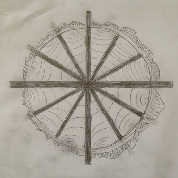 Mi plan era utilizar dos bofetadas de aliso que obtuve cuando hice mi motosierra licencia o certificación. Para hacerlo más interesante quise inverso los anillos de crecimiento mediante la reducción de las dos piezas en triángulos y pegar revés.