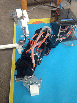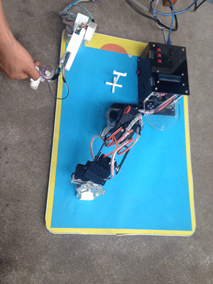 Como se muestra en el primer GIF, yo uso el manipulador para controlar el brazo robótico y deje que el brazo robótico para estudiar el proceso.