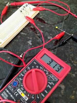 Diodos comunes, como un 1N4001, no son caros, pueden manejar 1 amp. y pueden caer un voltaje que fluye a través de ellos. He leído que cada diodo tiene que para soltar la tensión de 0,6 voltios, pero una prueba con un multímetro muestra la caída de tensión a ser aproximadamente la mitad de eso. Seis * diodos cayeron el voltaje de voltios 4,97 a 3,13 voltios. (Nota: tenía tres multímetros disponibles y tiene una lectura diferente en los tres. La diferencia entre el mayor y el menor fue 0,7 voltios para una lectura alta de 3,79 voltios. Ver la segunda foto. El te comparé metros mediante la lectura de la tensión en las pilas donde la corriente entra en el transmisor. Bajo una situación de carga como este tres metros todos eran muy, muy cerca uno del otro. Decidí que la circuitería de mi "mejor" metro fue interactuando de alguna manera con las anomalías de la fuente alimentación conmutada. El medidor de carga de Puerto poco barato dieron lo mejor de la lectura en esta situación para mi sorpresa. Cuando he quitado las pilas y conectado el cargador del teléfono con los diodos del agregado, el transmisor funcionado como debiera.)
