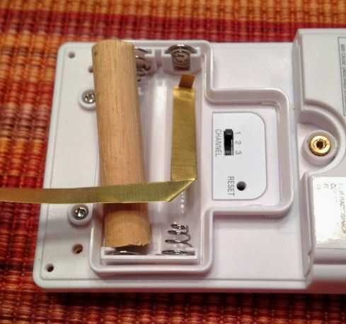 I cortar una fina tira de papel y equipado igual que el latón fino que ver aquí. Luego usé como patrón para cortar el latón fino. Hice formas simuladas de barra de pasador de madera de 3/8 de pulgada. Ver la segunda foto. Uno de la espiga extremos las necesidades de que un punto sobre ella similar a la punta de una batería de tan buen contacto se hará con el terminal dentro de su área empotrada.