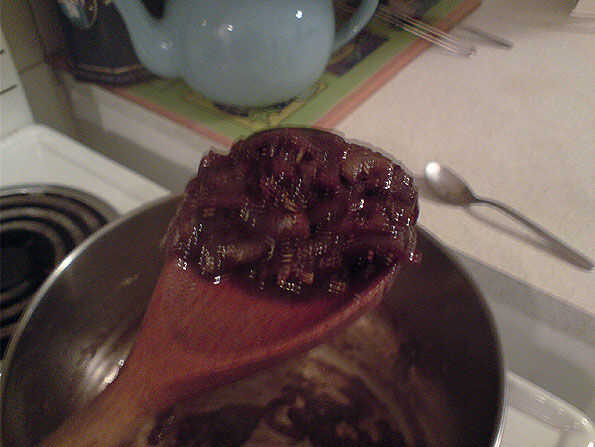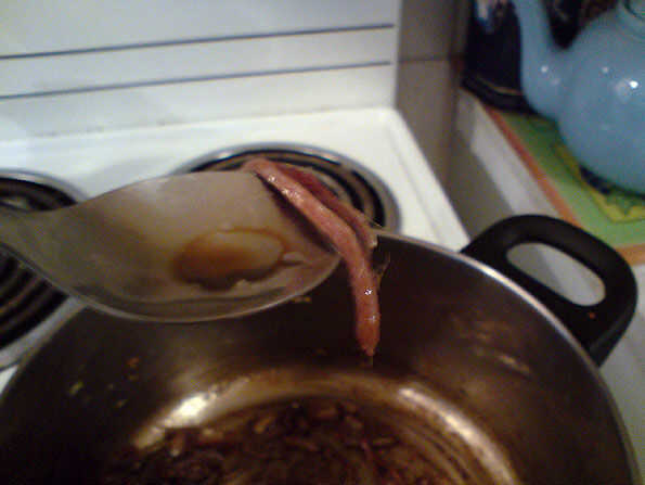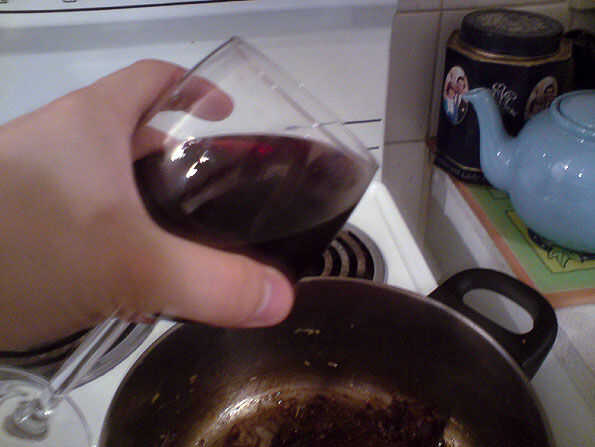 Después de la anchoveta añadir 1/2 vaso de vino tinto y reducir hasta gruesas y jarabe como.