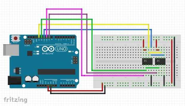 eso es todo hay, conducir uno de los pines bajo y otro alto para acceder el chip con el pin de baja, a darle la vuelta para acceder a la otra. Recuerde que si usted alterna ambos chips a la vez tendrás problemas de contención de bus como ambos chips intentan enviar datos a la arduino al mismo tiempo y todo lo que usted conseguirá es basura. y si no manejas ninguna aguja baja, nada se escucha los comandos, a ambos solo estar sentado pacientemente en la esquina esperando llamar sobre ellos. práctico, ¿EH? puede agregar fichas que tengas pins gratis.