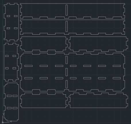 Al traducir su idea de CAD, necesita debe tener en cuenta que un cortador láser realmente quitar un canal estrecho (conocido como corte) de la madera corta, por lo que la pieza será siempre tan levemente más pequeña que la línea que dibujó en su programa de CAD. A menos que usted cuenta para el retiro de este material, se tienen brechas y la desigualdad en las articulaciones. Para resolver esto, el borde exterior de cada pieza que se dibuja debe ser un poco más hacia fuera que "perfecto" y cualquier rectángulos indicando los agujeros a cortar en mitad de una pieza (como donde un divisor funciona a lo largo de la placa inferior) deberá ser dibujado levemente más pequeño como el corte que agrande el orificio. Me pareció que el corte de la cortadora de láser Trotec en la configuración que estaba usando de. 015", pero los resultados pueden variar. Haga una prueba en el material primero antes de incorporar una medición posiblemente defectuosa en su diseño.