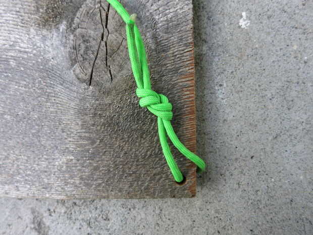 -Tome una de las piezas y atar el extremo en una figura 8 nudo, dejando un 9,25" libre de" cola".
