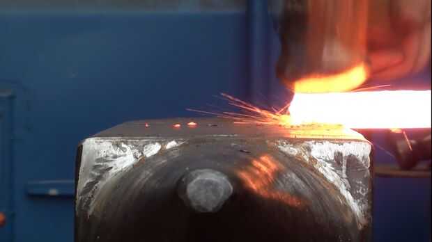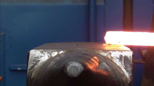 Tomar una forja cerca calor en la barra de acero templado redondo de 3/4 - 18mm de soldadura. Asegúrese de que el calor es incluso a través de la barra y empapado en.