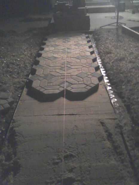 Utilizando una regla recta tal como un nivel o un corte de 2 x 4 a la longitud, screed su arena hasta la altura deseada, aproximadamente 1" de espesor.