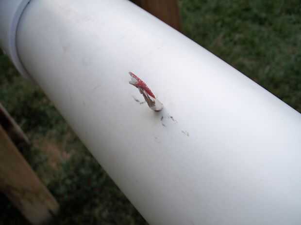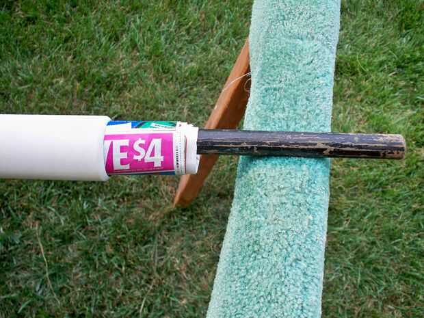 Se utilizan 2 caballetes y 2 polos, pegan los postes a través de la pistola y ponerlos sobre los caballetes. Todo llevó a cabo junto con la fricción, funcionada a la perfección.