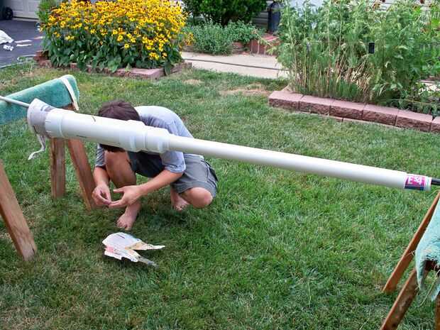 Resolvimos este problema diario y solo empujar dentro del cañón y la cámara de combustión. Ponemos una tira de cinta de pintor en el principio del cañón y la cámara de combustión, en caso de cualquier tipo de pintura lo hizo llegar (debido a un pequeño espacio entre el periódico y PVC en algunos puntos). Así que sería un dolor para eliminar o goma a los hilos de rosca.