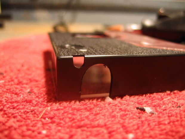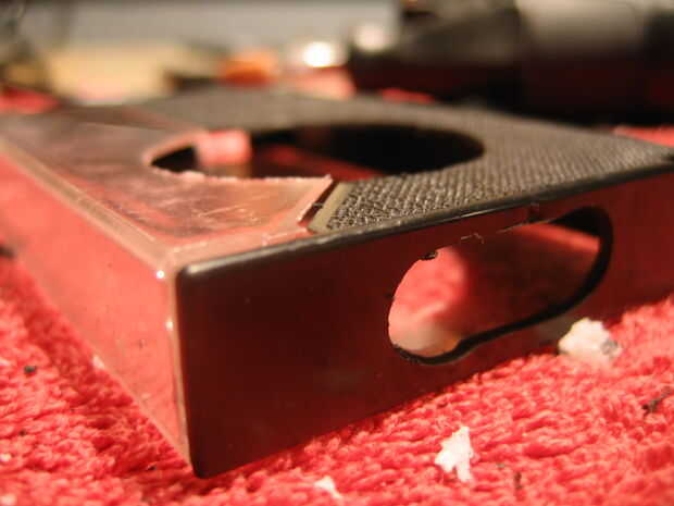 Para cortar el agujero para el conector USB, taladro directamente en la caja y luego tallar la longitud del enchufe. Es importante utilizar la forma cónica de la broca para cortar a la anchura correcta.