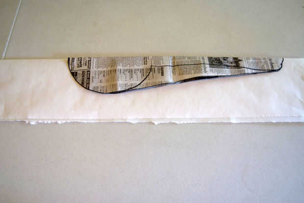 Esta forma probablemente será un poco tambaleante. Incluso puede salir la simetría doblando por la mitad longitudinalmente, trazado alrededor del punto más amplio de ambas mitades sobre otro trozo doblado de papel más pesado y cortar este patrón nuevo, simétrica. Se trata de su patrón de papel de trabajo.