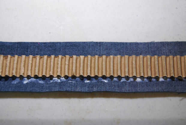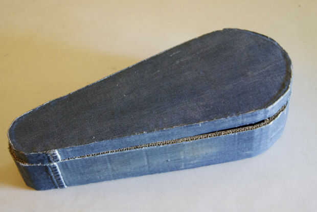 ¿Recuerde que solo surcan que pelada apagado en el paso 3? Aquí es donde usted va a utilizarlo. Corte hasta 1" de ancho. Envolver en más tela, Mod Podge el exterior y pega firmemente a la tapa solamente. Esto hace el labio un poco para cubrir la abertura.
