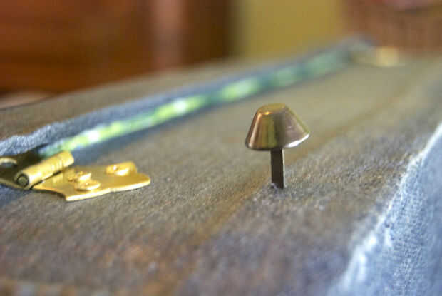 Pies se agregan a continuación, aunque este es un paso opcional. Son insertados como latón papel clavitos y doblados abiertos en el interior para garantizar.