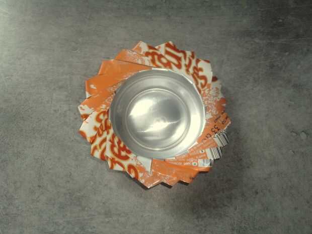 hacer un ingenioso cenicero pequeño de cualquier cerveza ordinaria puede! Precioso!Paso 1: Paso 1 Una cerveza puede. CORTÓ SU CABEZA. No corte los dedos.Paso 2: Paso 2 Usar tijeras para cortar verticalmente hacia abajo de la lata. Entre 5 y 8 cortes