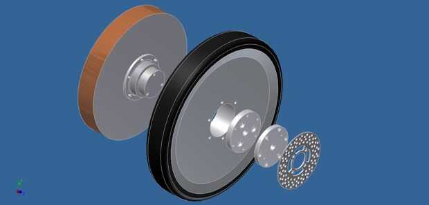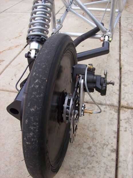 Añadió que freno trasero era una molestia importante, porque el volante motor nunca tuvo la intención de tener uno. Terminamos corriendo una varilla a través del centro de la rueda trasera para proporcionar un lugar para montar la pinza. Luego montamos una extraña serie de discos para montar las pinzas directamente a la llanta.