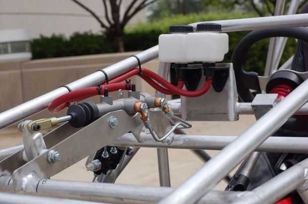 En la retrospección era overkill para poner frenos en las tres ruedas! (Una vez más, nos enfocamos un poco demasiado el rendimiento de manejo). Tener frenos en sólo los neumáticos delanteros hubiera sido adecuada porque la mayoría (60% - 70%) de su potencia de frenado proviene de la parte delantera debido a la transferencia de peso de la desaceleración.