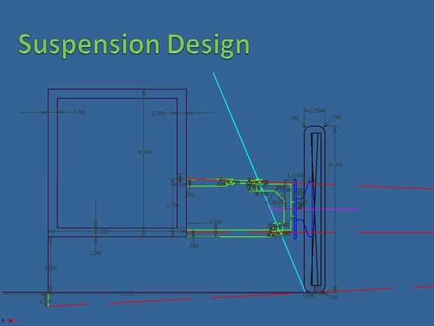 Modelado geométrico: Uso 2D modelado para comprobar suspensión en varias posiciones para asegurarse de que hay espacio para todo y que todo se articula como debería.