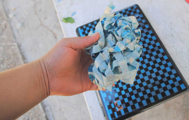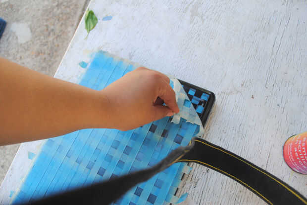 Finalmente pintar otra vez y empezar a quitar la cinta como un regalo. Si está utilizando otro color puede volver a hacerlo cubriendo sus cuadrados y pintar con otro color, simplemente volver a pasos