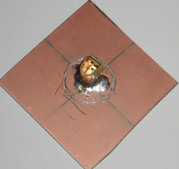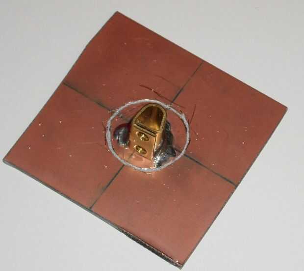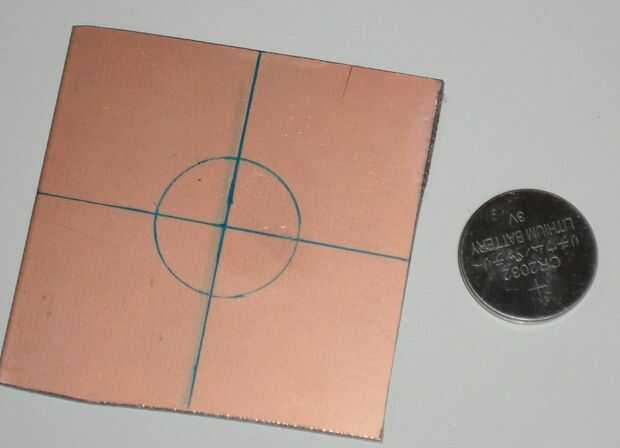 Y finalmente, perfore un pequeño agujero en el centro de la zona del pcb (de modo que un cable puede ser soldado para venir a través del otro lado.)