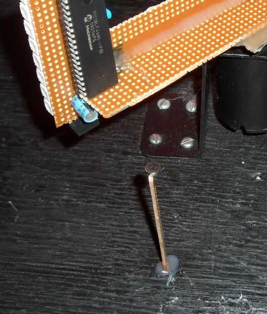 Tendrá que cortar una pieza más fina de veroboard para actuar como un pilar para el imán. Pegar el imán en la veroboard y luego el otro extremo a la madera base directamente debajo del sensor de efecto hall.