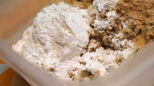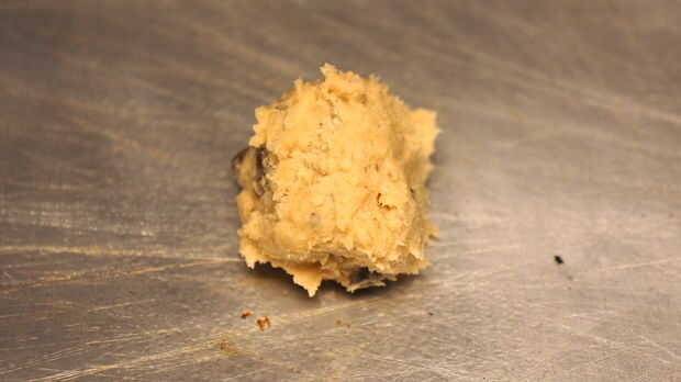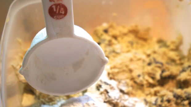 Después de ver los resultados decidí hacer 2 galletas mediante la adición de 1 1/2 cucharaditas de harina regular a la mezcla. Yo al horno los dos y resultaron perfecto. Entonces agregué 1/4 taza de harina regular con el resto de la masa y es la solución perfecta. Uso de diferentes harinas puede cambiar la textura de la masa. Sugiero al modificar una receta; hornear un par de galletas a la vez para ver qué tan bien cuece al horno. Decidí usar harina regular a la mezcla porque eso es lo que pedía la receta original. Harina de almendra no es una verdadera harina sino más bien una harina de tuerca que es mucho courser de regular harina. Es por eso que decidí agregar 1/4 taza a la receta original reduciendo la harina normal por 1/4 taza.