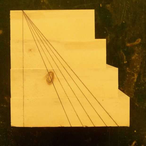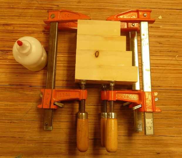 Tomar la chatarra y cortar cuatro piezas; 5", 4-1/2", 4 y 3-1/2" de largo. Pegamento y sujetarlos como se muestra en la foto.