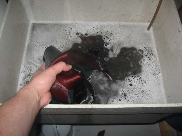 Tengo un lavabo profundo se hunden en el sótano, así que los pongo todos en la lleno con agua jabonosa caliente, junto con un blanqueador para patadas.