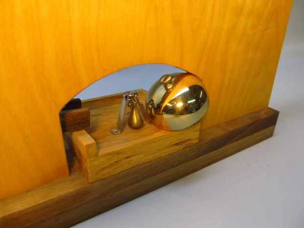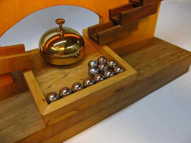 Necesita la campana como su tamaño afectará el tamaño de la cuenca, así como otras dimensiones. Cuando construí mi juguete, pude comprar un kit de campana de mostrador/escritorio de latón en el Lee Valley. Desgraciadamente, ya no está disponible, pero puedes encontrar en tiendas de suministros de oficina escritorio campanas (o cascabeles de contador). Aquí está un acoplamiento a Campanas de bronce escritorio en Amazon.com (enlace afiliado).