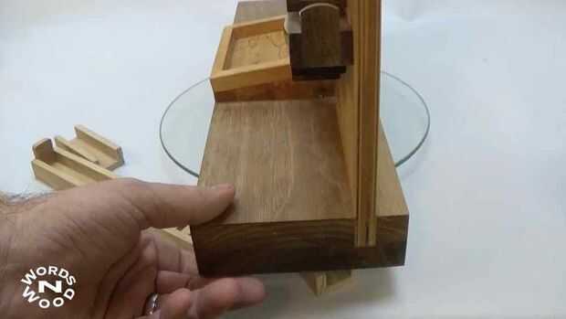 Desea una pieza bastante gruesa para la base, para dar peso a la pista de carreras, para que no fácilmente caiga. Puede corte con un disco de moldurar y ajuste nuevamente dentro de la ranura. Hice esto una diferente manera. No tengo una pieza gruesa de la base, así pegan dos tableros. Pero primero arrancó uno más estrecho, las dos piezas pegadas. Luego agregó el tablero trasero y una pieza en la parte posterior de la base y pegada y sujeta todos juntos.