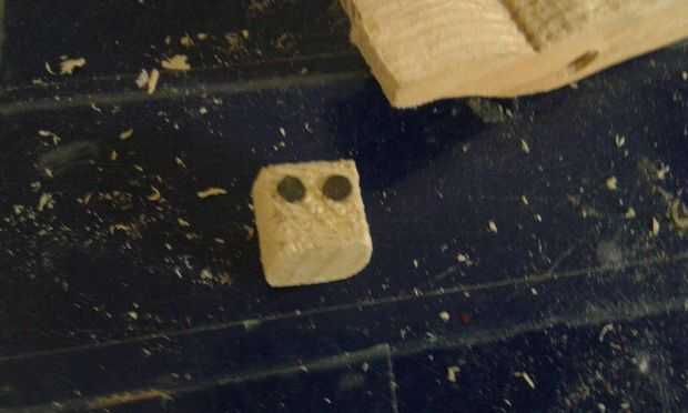 que perfore un agujero de 8 mm en ella pero sólo la mitad a través de poner en algunas espigas decorativas para los eys