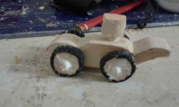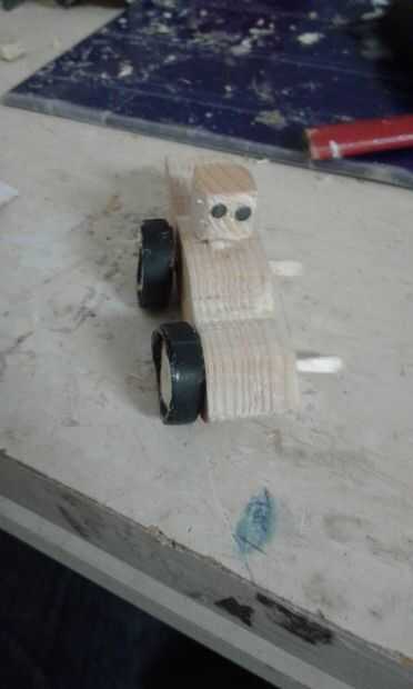que poner la rueda y el eje a través de los agujeros en el cuerpo del coche. poner pegamento en la y y la otra rueda.