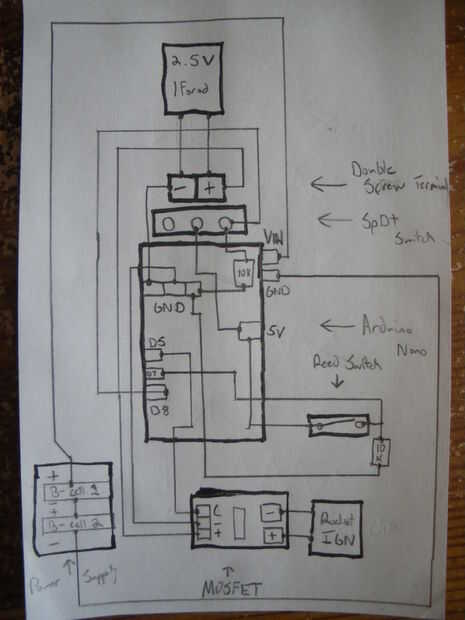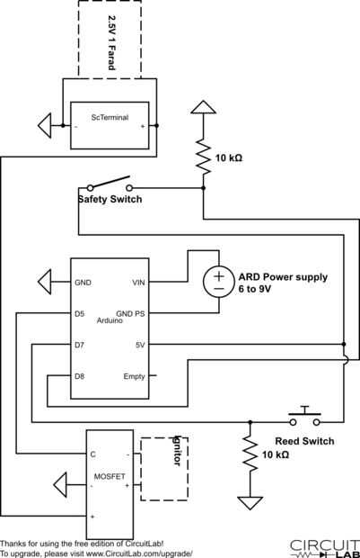 En términos más simples, es un circuito que toma una señal de interruptor reed y funciona un temporizador que tiene un interruptor de seguridad que, tras un período preprogramado de tiempo, se abre un camino en el MOSFET al condensador que enciende los motores de etapa segunda.