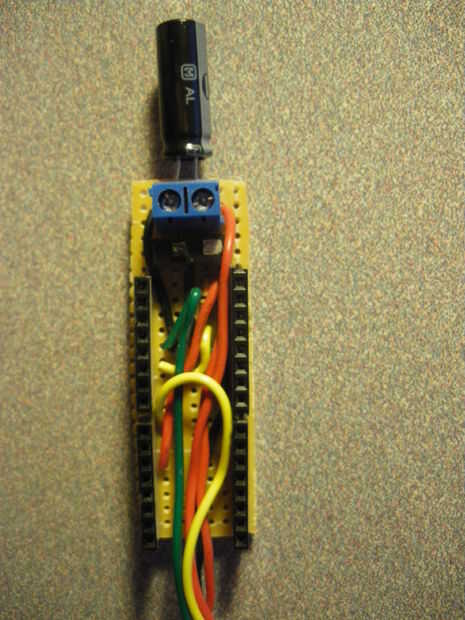 (4) el zócalo/perfboard de Arduino es la parte más difícil pero debe ser bastante simple. En primer lugar, tomar los headers hembra y cortado a la medida, con dos hileras de 15 pines. Entonces, soldarlos a un perfboard con una anchura de 5 a través de. Directamente sobre la parte superior del encaje, déjese tal vez 3 de distancia. Soldar el interruptor SPDT el perfboard, luego en uno de los tiros del interruptor Solde un resistor de k 10 a la Junta. Luego, por encima, colocar los terminales del condensador y soldarlos tan de cerca al interruptor como sea posible. Después de que los componentes han sido colocados, todo lo que queda para la soldadura es los cables, yay!