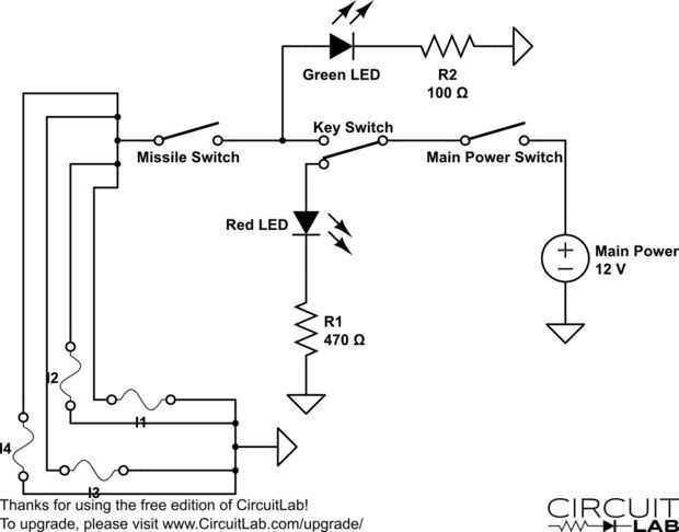 En primer lugar, hay un interruptor que proporciona la energía a todo el conjunto. Entonces, es una llave que es básicamente una clave de seguridad para cuando esté listo para lanzar el cohete. Por último, hay una cubierta de interruptor de misiles para proteger a la llave final que se enciende los cuatro motores de etapa 1.