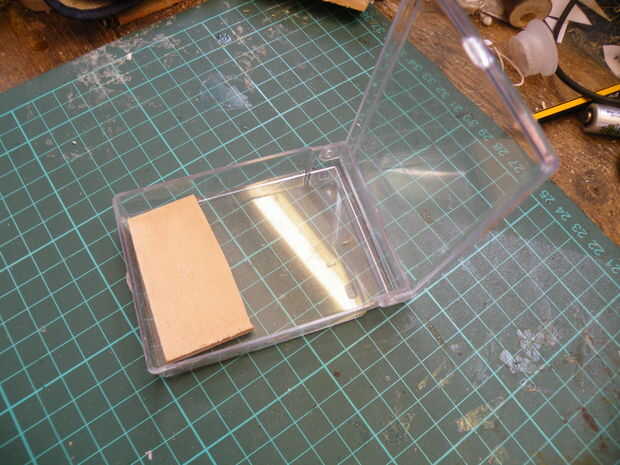 Tomar el trozo de madera y cortar para que quepa dentro de la caja.