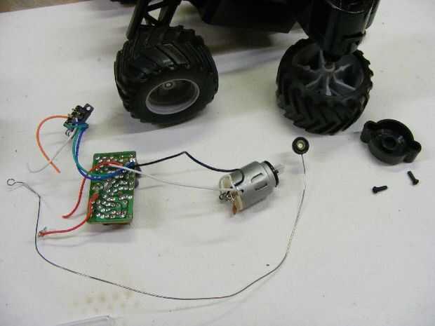 En este punto usted debe tener una tarjeta de circuito con un motor y un interruptor conectado, además de la antena y un engranaje de plástico.